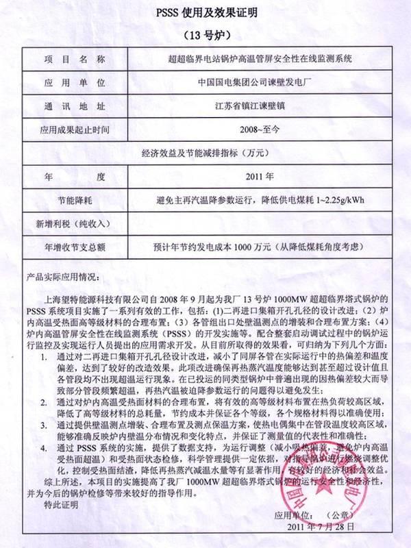 國(guó)電諫壁7號(hào)爐 應(yīng)用證明 |